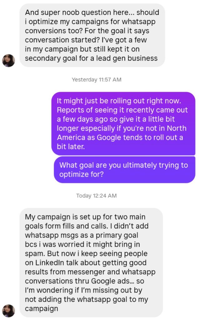 Google’s rollout process is chaotic and inconsistent. Updates don’t always launch in North America first, and sometimes features quietly appear in smaller regions before major ones. WhatsApp’s conversion goal is a perfect example. But as Ameer reminds her audience, rollout patterns don’t matter nearly as much as sticking to fundamentals: ignore hype, track real outcomes, optimise for what grows your pipeline.