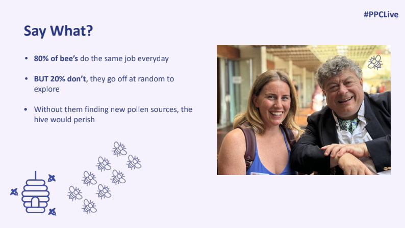 One of the standout moments was the “Explorer Bee” analogy (inspired by Rory Sutherland’s thinking).